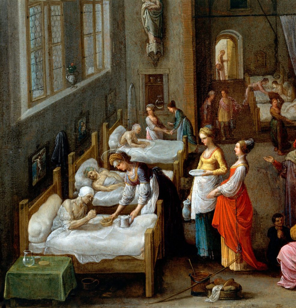 Saint Elizabeth of Hungary bringing food for the inmates of a hospital. Oil painting by Adam Elsheimer, ca. 1598. Source: Wellcome Collection.